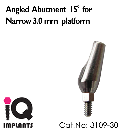 Angled Titanium Abutment 15º for IQ Implants with Narrow 3.0 mm Platform.
