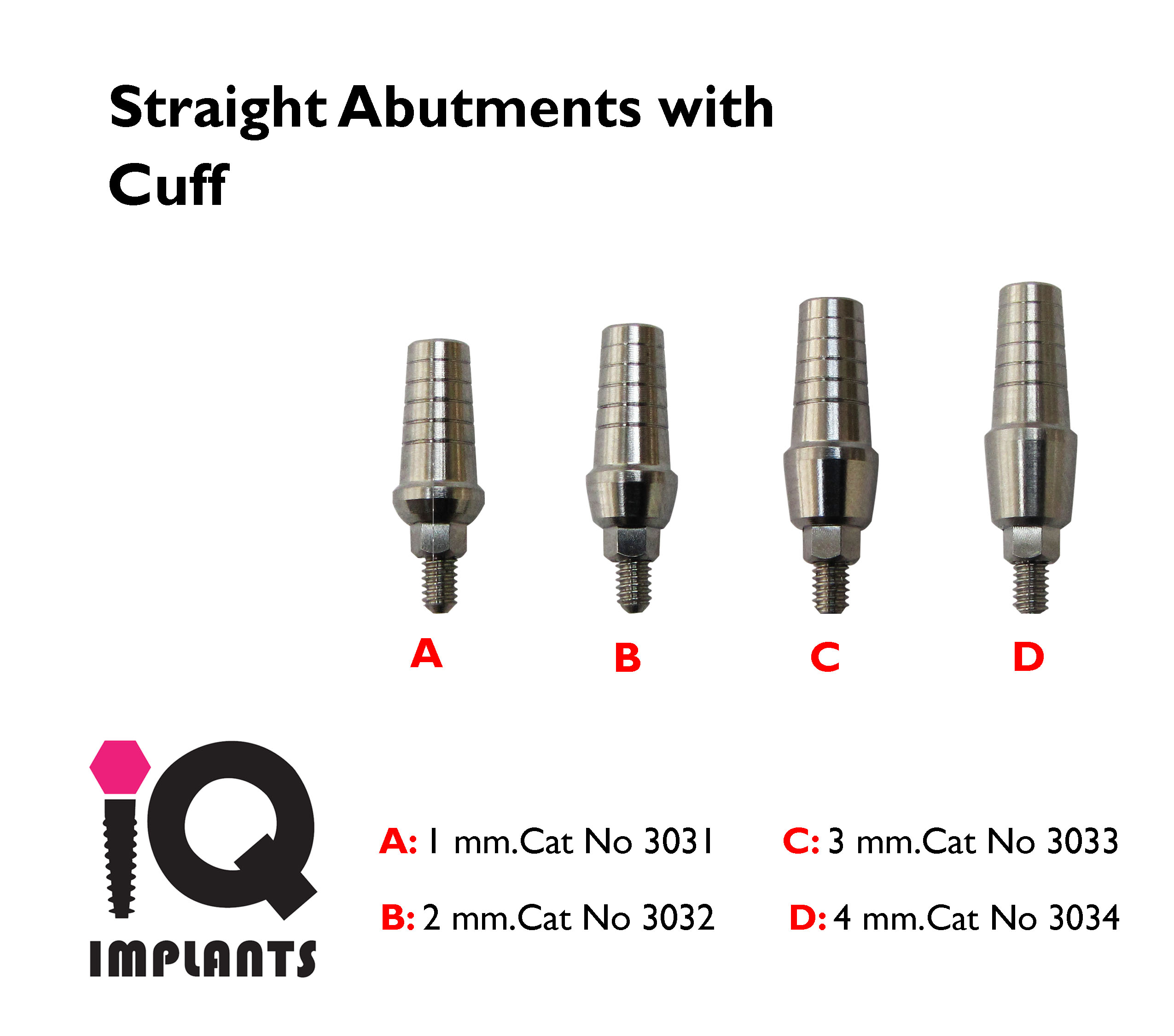 Shouldered Titanium Abutment for Dental Implants with Internal Hex. There are 4 gingiva heights : 1 mm, 2 mm, 3 mm and 4 mm. Prefabricated chamfer ensures perfect fit for casted copings. All the abutments come with fixation titanium screw. Compatible with all dental implants with internal hex and regular prosthetic platform – 3.75 – 3.80 mm.